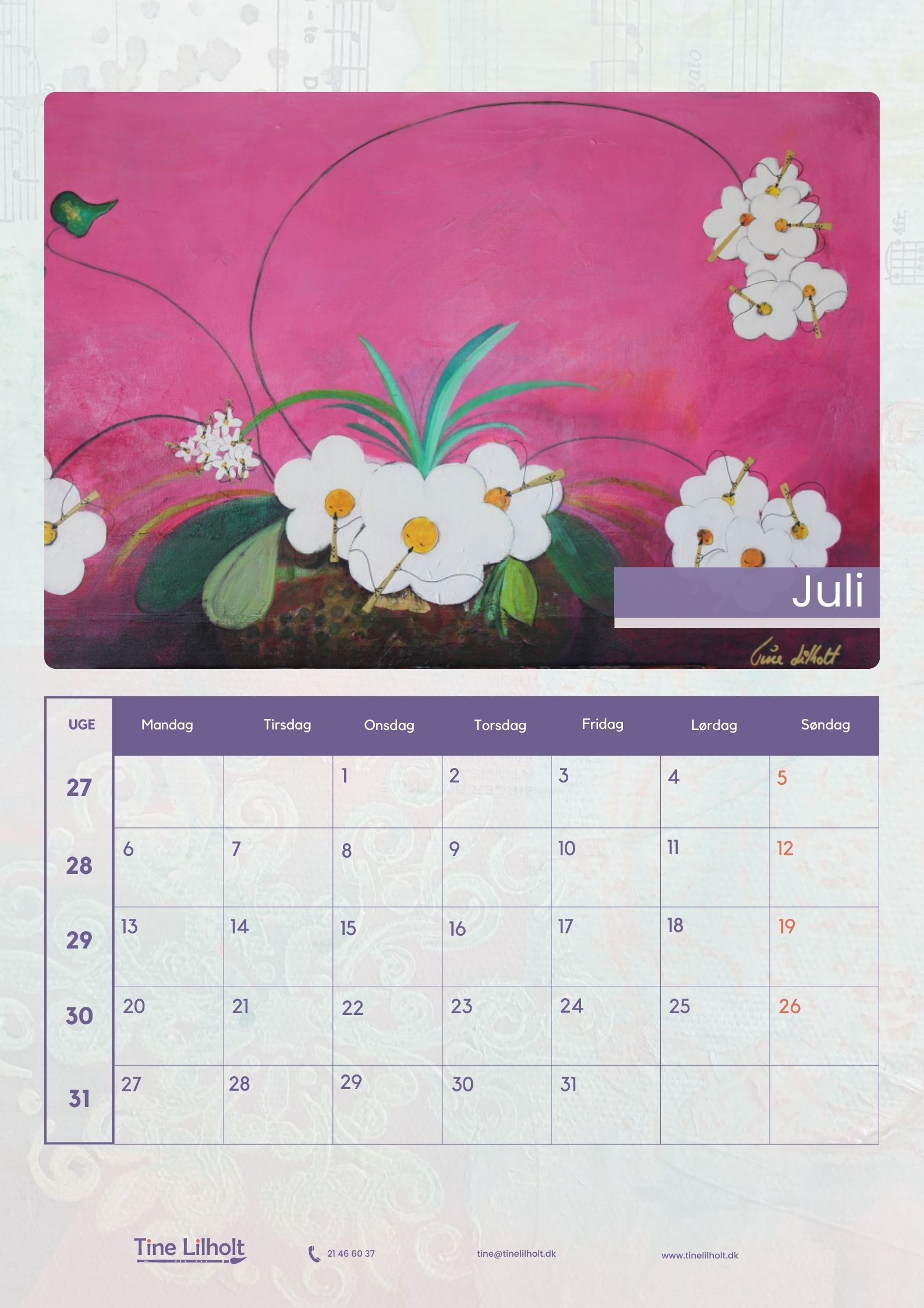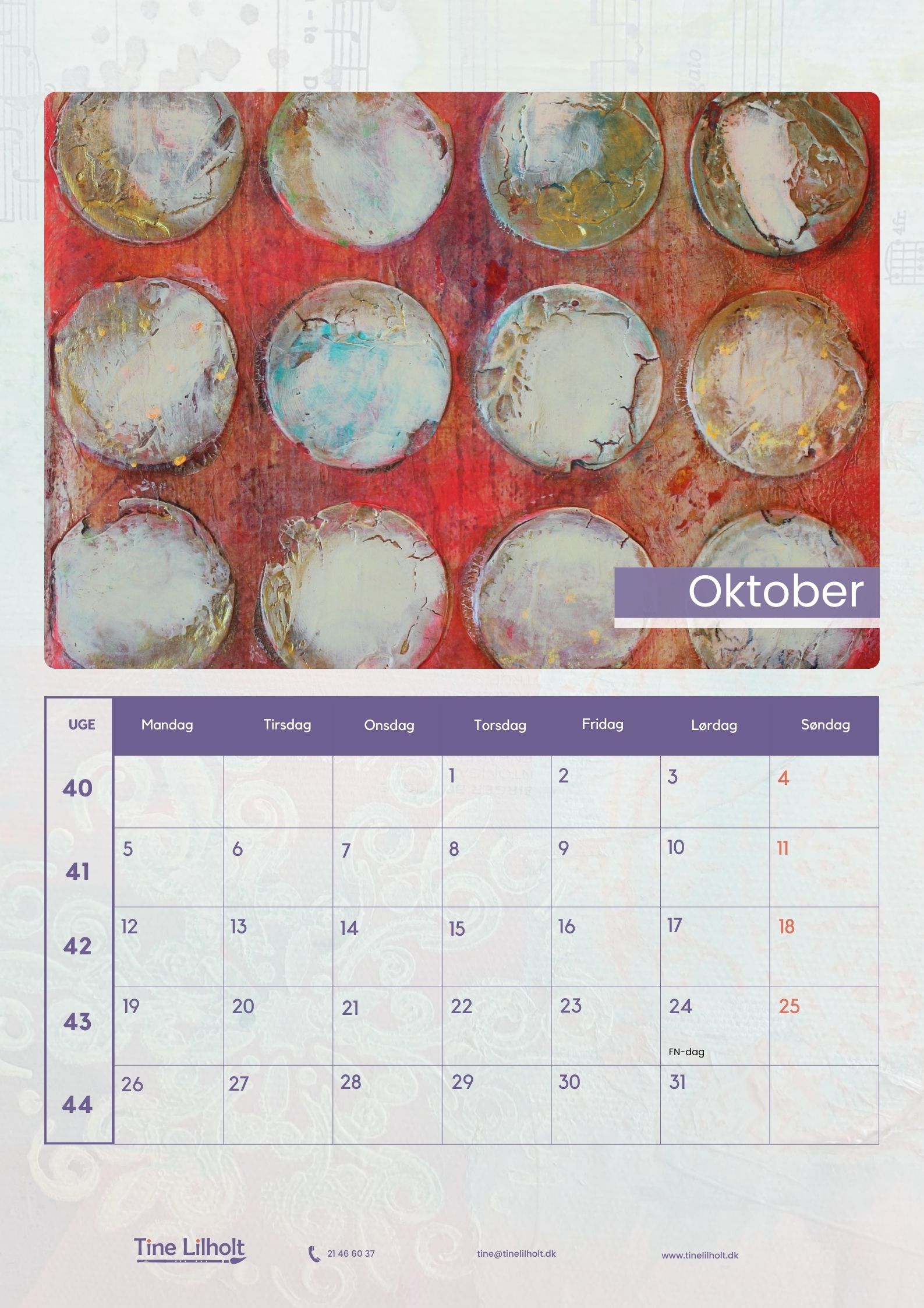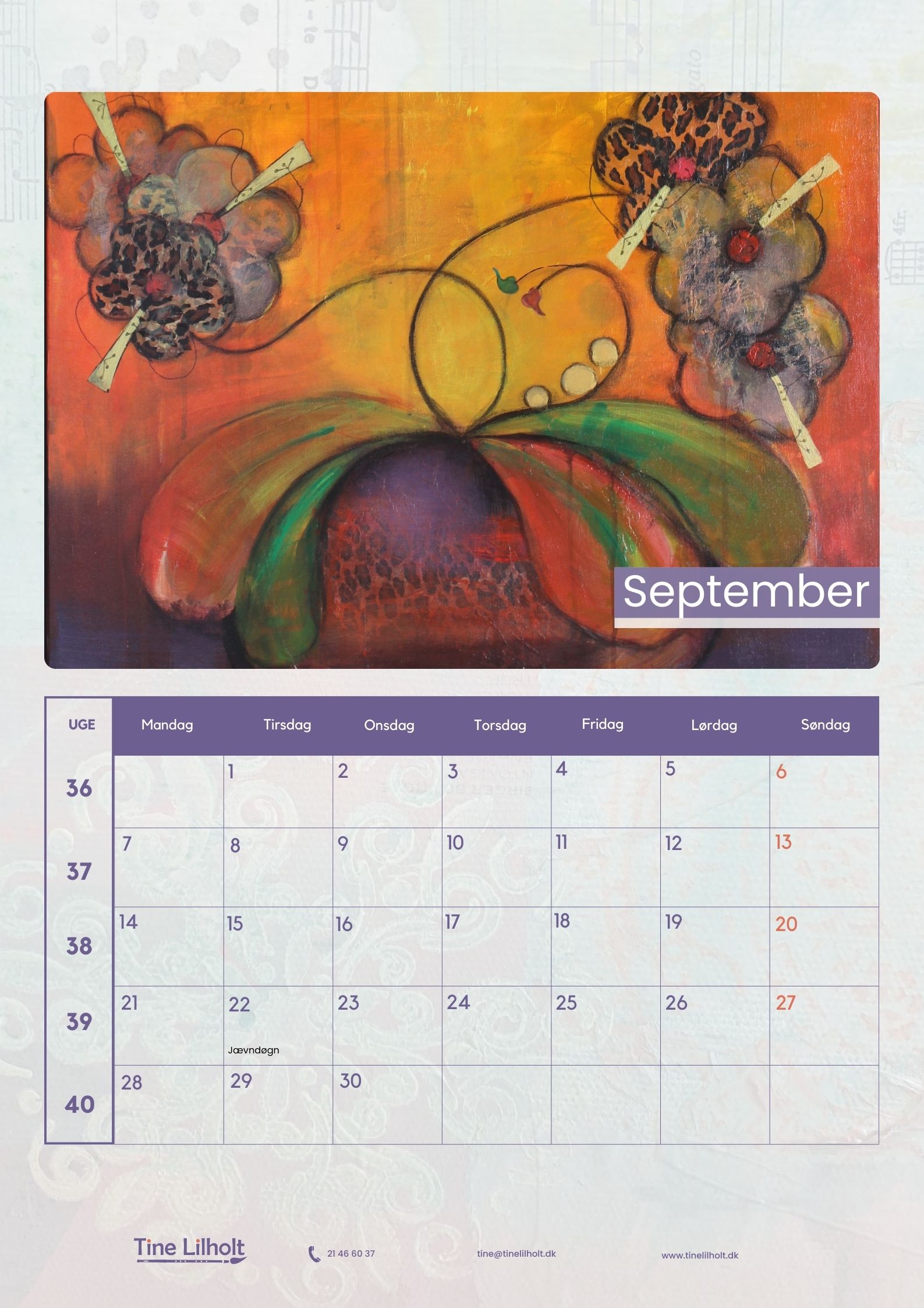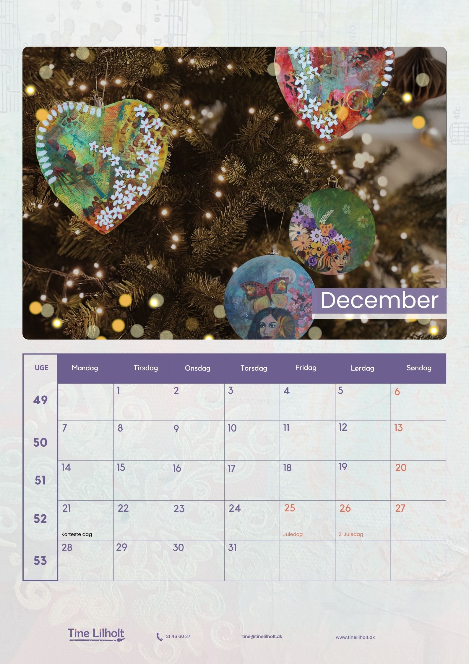 Tine Lilholt Kunstkalender 2025. Forventes at være klar til salg 4/10 2026.
