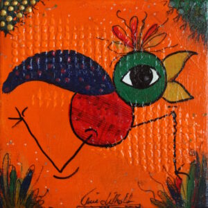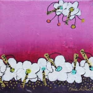 Akrylmaleri 20 x 20 cm i orange og hvide farver.