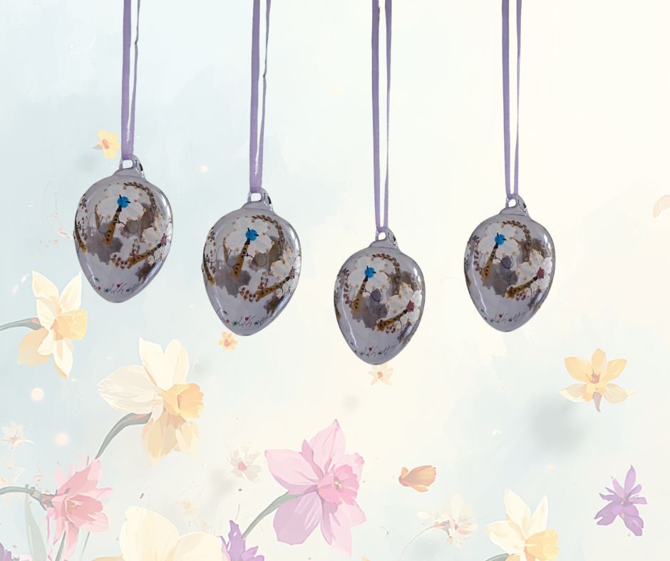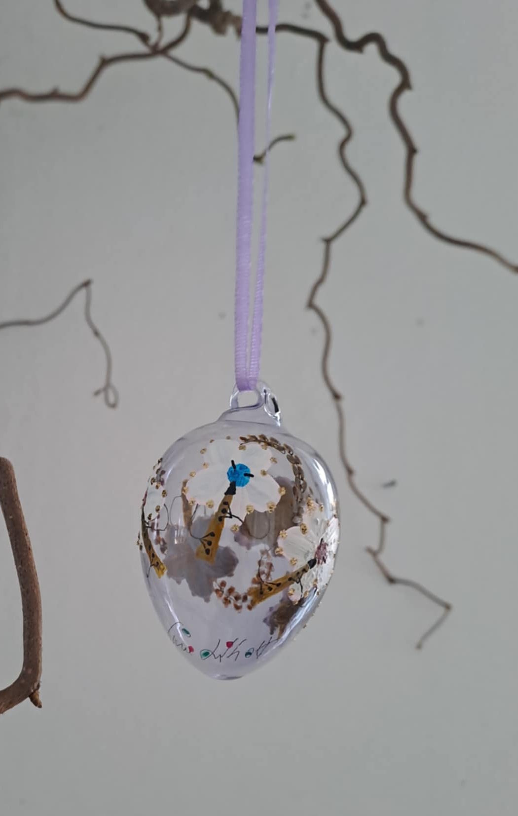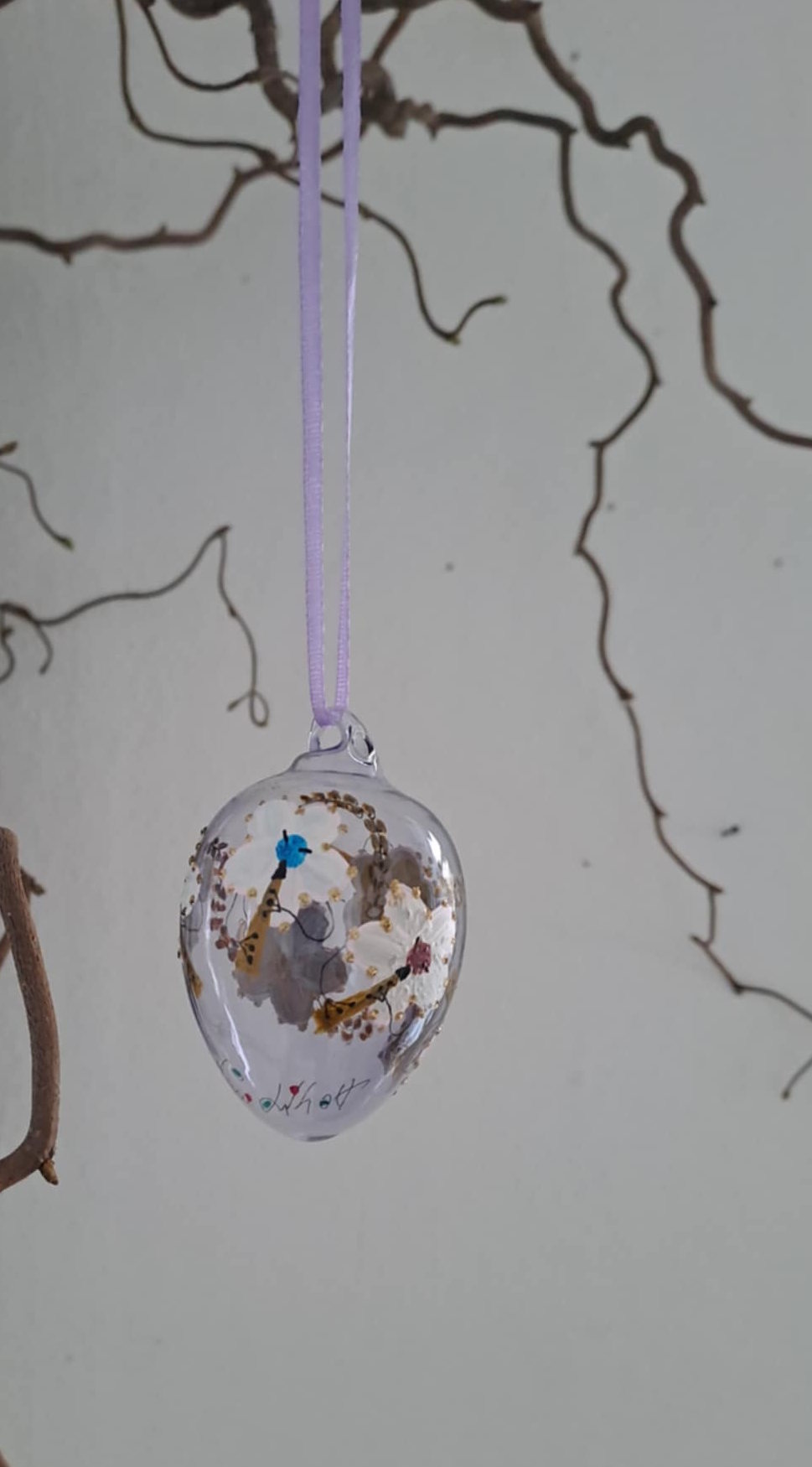 Lilla Glasæg dekoreret med blomsterblæsere. 6 cm.