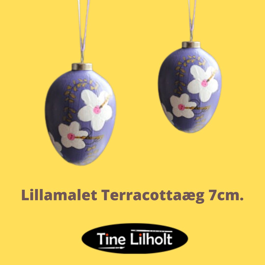 Lilla Terracottaæg. Dekoreret med blomsterblæsere. 7 cm.